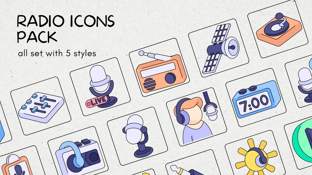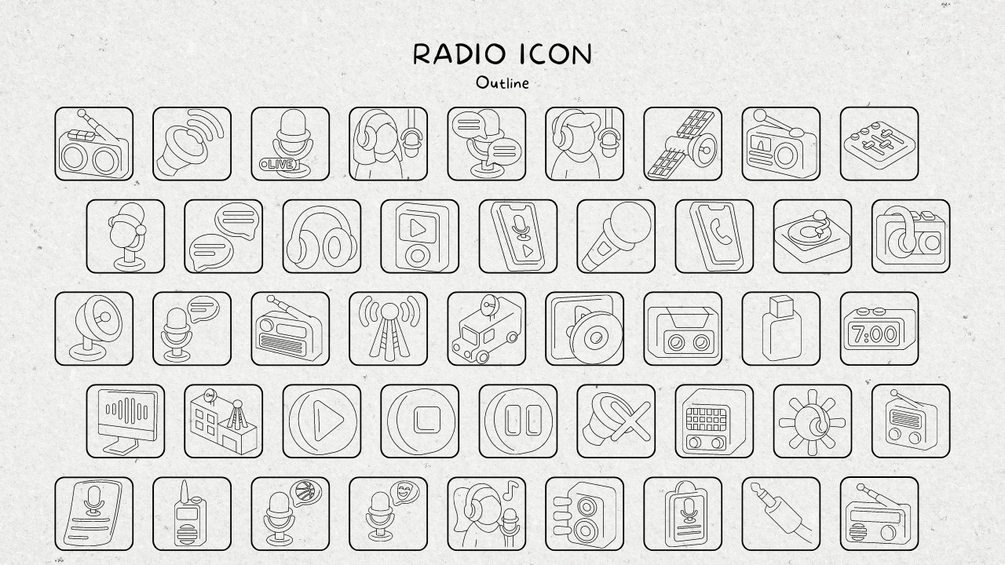 Radio Doodle Icons Set is a collection of doodle/cartoon style designed to enhance visual storytelling in your creative projects.
